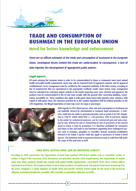 Background documents on wildlife trade (Developed by the SPF Health Food Chain Safety and Environment)